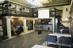 На первом этаже находится кафе, где Вас ждет широкий выбор блюд белорусской и европейской кухни, есть банкетный зал. В кафе можно заказать и обслуживание в номере.