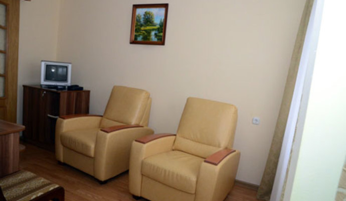 | 6 номеров люкс - трехкомнатных двухместных | ванная | ТВ, X, T |