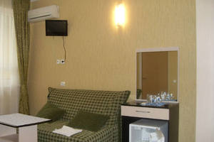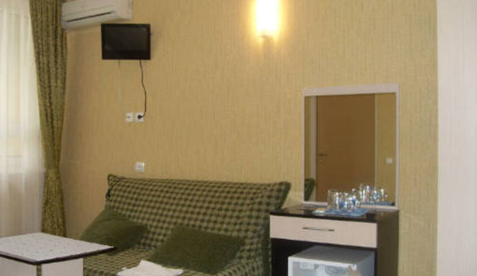 * В номере: две кровати, платяной шкаф, тумбочки, санузел с душем (поддон, шторка), телевизор, холодильник.