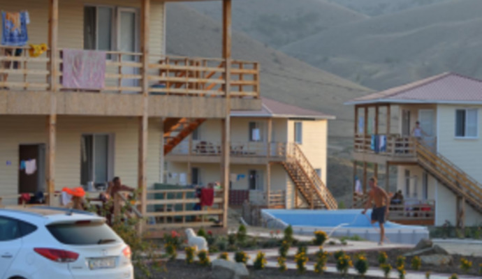 Отдыхающие располагаются: в новых двухэтажных домиках, в двухместных и четырехместных номерах. В номерах расположены кровати, шкаф, тумбочки, вентилятор, холодильник (в 4-х местном номере). Для 2-х местных номеров – холодильники на этаже. В доме на 1-ом этаже – четыре 2-х местных номера, на 2-ом этаже – два 4-х местных номера. На каждом этаже – терраса размером 2,5м. х 8,9м., на которой для каждой комнаты имеются столы и стулья. Дома с видом на море (до моря 50-100м.).