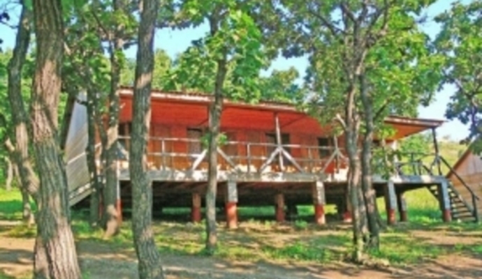 База находится на небольшой возвышенности (в 100 метрах от моря), на территории дубовой рощи, к ней прилегает галечный пляж. Уникальное расположение и огромная территория базы отдыха позволит своим гостям в полной мере насладится природой.