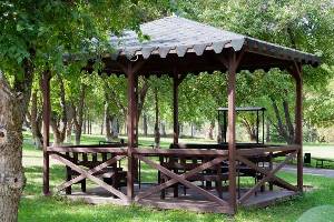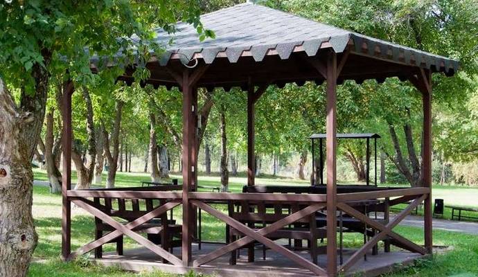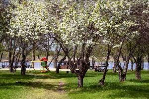 и сауны, зоны для пикников, футбольное поле и волейбольная площадка.