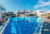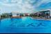 Большой бассейн 500 кв.м. Территория вокруг бассейна имеет несколько зон для отдыха: здесь есть теневая зона, оборудованная большими зонтами и перголой, и зона, открытая для солнечных лучей, где удобно загорать. Также есть отдельные детская зона в бассейне и зона гидромассажа. Рядом с бассейном располагается бар.