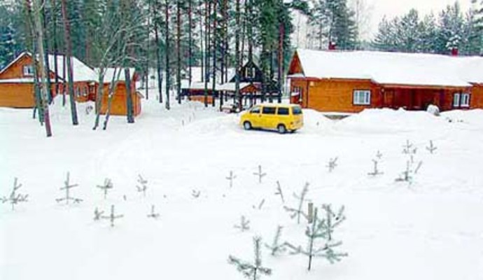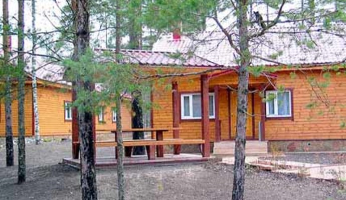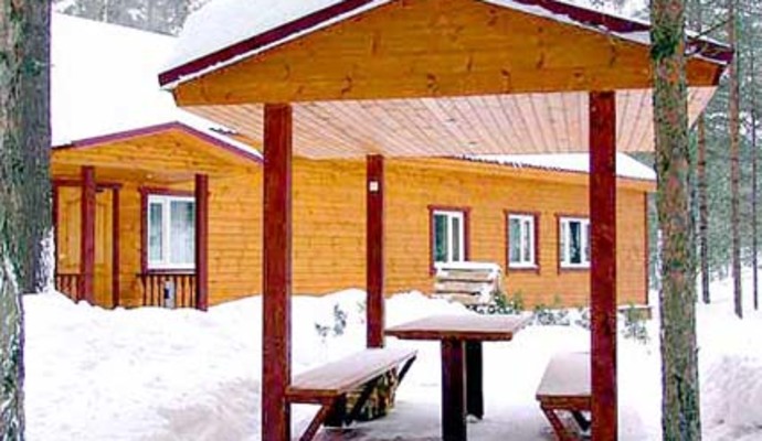 * десятиместный коттедж "VIP" (пять спален с двуспальными кроватями; просторный холл с мягкой мебелью и камином, телевизор, видео, музыкальный центр, полностью оборудованная кухня с необходимым набором посуды, душ, туалет, ванна (импортная сантехника), сауна с предбанником, большая открытая веранда).