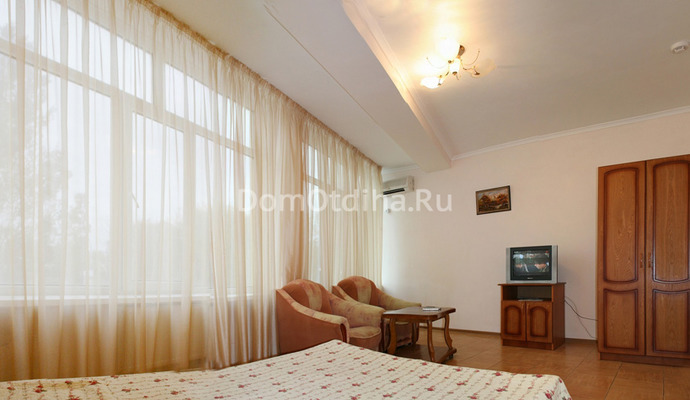В номерах гостевого дома Адельфи: удобная мебель, телевизор, холодильник, сплит - система, санузел.