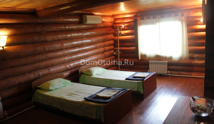 На первом этаже сруба расположены просторная столовая на 12 персон, оборудованная спутниковым телевидением, сплит-системой, системой обогрева пола и кухня со всей кухонной техникой, посудой и морозильными камерами. Кроме того на 1-м этаже расположены две комнаты ( одна 3-х местная и одна 2-х местная ) и санузел с душевой кабиной. Сразу хочется отметить, что дом обеспечен всеми коммунальными удобствами. На втором мансардном этаже расположены одна большая 3-х местная комната, одна комната поменьше рассчитанная на проживание 2-х человек , холл, который возможно использовать для проживания 2-х человек и санузел с душевой кабиной. Весь дом оборудован сплит-системами. Дом отапливаемый, тёплый и поэтому мы работаем круглый год.