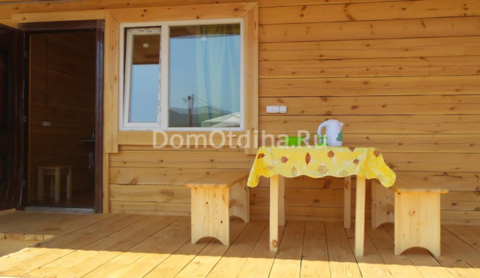 Благоустроенные номера со своей кухней и санузлом по принципу "квартира-студия" с выходом на террасу. Площадь квартиры - 24 кв.м. Терраса - 12 кв.м. Кухня в номере включает: раковина с горячей и холодной водой, холодильник, плита, чайник, посуда, стол и скамейки, табуретка, средство для мытья посуды и прочие мелочи. Санузел: душевая кабина, компакт-унитаз, умывальник, мощный водонагреватель В номере - двухспальная кровать и 2 односпальные кровати. Постельное белье выдается. Вы можете готовить пищу прямо у себя в номере или на своей террасе, где подключено электричество и трапезничать на свежем воздухе!