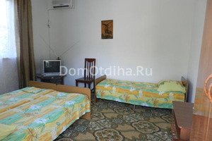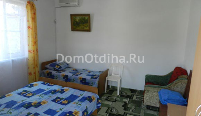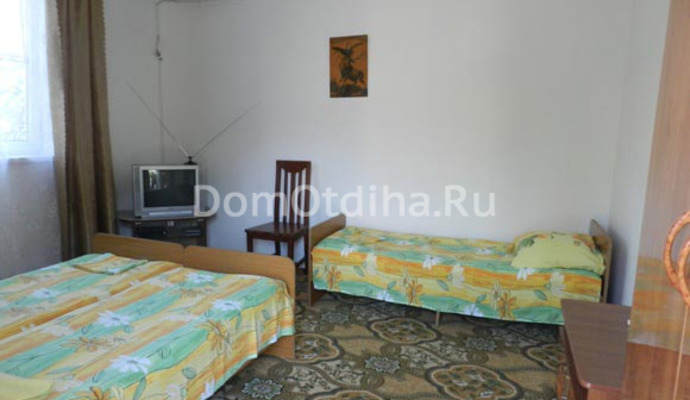 Частное домовладение. Сдаются комнаты эконом класса на 3-4 человека. Душ и туалет находится рядом с домом, в отдельном блоке. Вода холодная, горячая - круглосуточно. В комнатах есть: спальные места, телевизор, сплитсистема, зеркало, шифоньер.