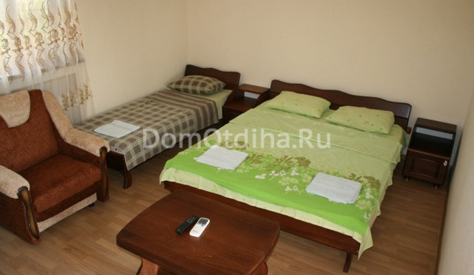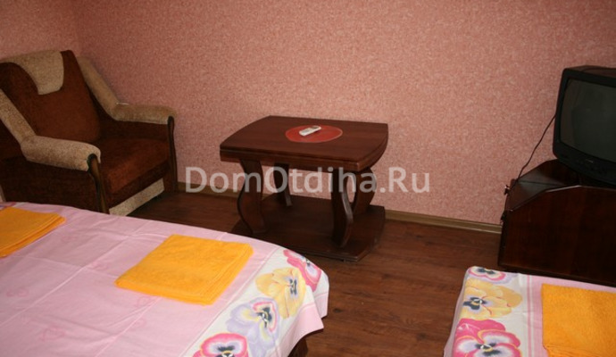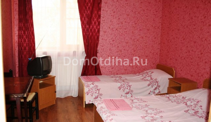 Светлые номера гостевого дома оформлены в теплых тонах. В каждом номере есть телевизор, холодильник и чайник. В ванной комнате гости могут воспользоваться феном.