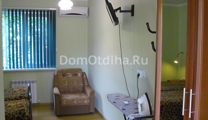 Все четыре номера одинаковы по размерам и комплектации. Площадь номера с санузлом (душ, раковина и туалет) составляет 16,4 м2. Во всех номерах есть сплит-система, телевизор, шкаф, гладильная доска с утюгом, кресло-кровать, тумбочки прикроватные. В одном из номеров стоит 2-х спальная кровать, в остальных по две односпальные кровати.