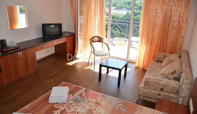В центре курортного поселка Ольгинка, на горе расположен гостевой дом "Маркиза". До пляжа 10 минут ходьбы. Гостевой дом построен и принял гостей в 2013 году. Номерной фонд гостевого дома - 12 комфортабельных номеров. В каждом номере имеется возможность установить дополнительное спальное место (евро-раскладушка). Дети до 5 лет на дополнительном месте БЕСПЛАТНО. Для гостей - бесплатный Wi-Fi. Большой балкон имеется каждом номере. С него открывается великолепный вид на Черное море, прибрежную зону и горы. В номерах: сплит система, телевизор, сейф, фен, сушилка для белья, холодильник, чайник, посуда. В ванных комнатах - душевые кабины, раковина и унитаз. Влажная уборка в номерах делается ежедневно. К услугам гостей уютное кафе с домашней кухней и напитками. Бесплатная парковка. Ведется видеонаблюдение. В стоимость входит проживание и комплексный завтрак. Дети принимаются с любого возраста. Одноместное размещение: скидка 20% от стоимости двухместного размещения, только для номеров "Стандарт". В шаговой доступности от гостиницы: автобусная остановка, магазины,рынок, аптека, аквапарк, салон красоты, детские площадки. Для прогулок и развлечений гости могут воспользоваться инфраструктурой ОК "Орбита" и ОК "Гамма". Дополнительные услуги: трансфер (встреча, проводы в аэропорту и на ж/д г. Краснодара или в Туапсе), организация экскурсий.