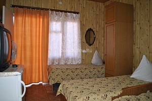 Условия проживания: 2-х, 3-х, 4-х, 5-ти местные номера. Номеров с личными сан. узлами у нас нет. Удобства находятся в шаговой доступности возле номеров и рассчитаны на 3 номера каждый. Все души с горячей водой. В каждой комнате кровати односпальные и двуспальные с ортопедическими матрасами, прикроватные тумбочки, стол, шкаф для одежды, телевизор, холодильник, вентилятор. В коридоре на 2-м этаже стоит мощный кондиционер. Во дворе есть две общие кухни для приготовления пищи.