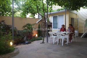 Уютный двор под виноградником с альпийской горкой и столами для отдыха и приема пищи. Оборудованная кухня для самостоятельного приготовления пищи. Есть Интернет WI-FI. Автостоянка.