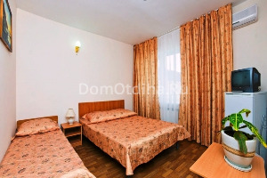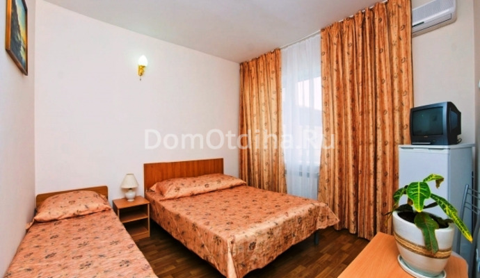 Есть комфортные 2-х, 3-х, 4-х местные номера и кроме того номера с двумя комнатами. Кондиционер и холодильник установлены в каждом номере. Также номера оборудованы отдельным санузлом и душевой кабиной.