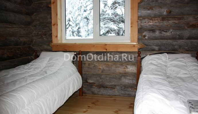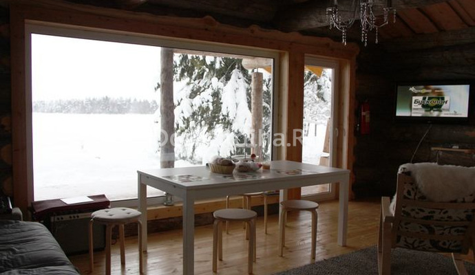 К услугам гостей 2 одноэтажных деревянных дома. 6 основных мест + 1 дополнительное. Большая гостиная с камином и видом на озеро. Мягкая мебель, большой обеденный стол, стулья. ТВ с цифровым телевидением. Кухня с набором посуды, двухконфорочная электрическая панель, холодильник.
