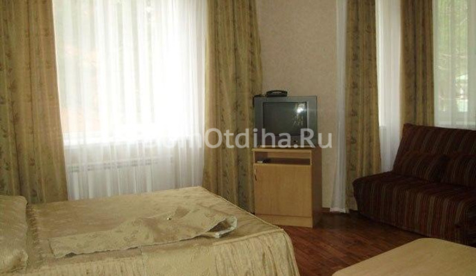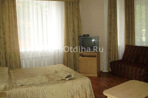 Размещение отдыхающих: люксы и п/люксы. Отличие наличие ванны или душа, а также метраж номера. А также есть двухкомнатные номера. В каждом номере есть санузел, телевизор, холодильник, кондиционер, чайник, минимальный набор посуды. Холодная и горячая вода постоянно.