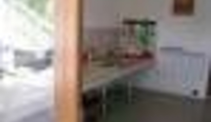 На первом этаже кухня с газовой плитой, микроволновкой, посудой и всем необходимым для приготовления пищи.