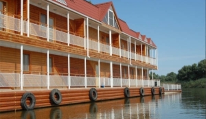 Стильная двухэтажная гостиница «Глаголь» расположилась на Малобелинском банке, в 20 км ниже по течению от п. Зеленга .