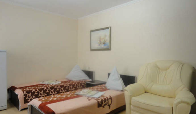 •2-х местные с удобствами на этаже (на 9 номеров 2 душа и 3 туалета). В номере: телевизор, холодильник, кондиционер, две односпальные кровати, кресло-кровать, шкаф, тумбочка, стол.