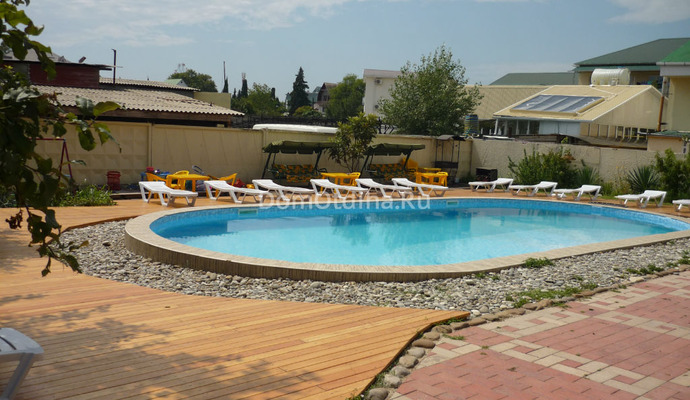 Отличительной особенностью нашего отеля является бассейн — длиной 12 м и шириной 5,5 м (60 м², глубиной до 1,9 метров, оснащен Римской лестницей), расположенный на южной солнечной стороне. Зона отдыха вокруг бассейна выложена террасной доской из лиственницы, привезенной с берегов Байкала. Достаточное количество шезлонгов позволит вам насладиться солнечными лучами в течении всего дня.