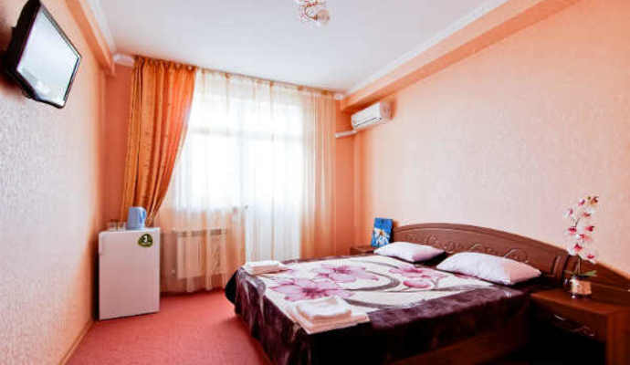 Номерной фонд насчитывает 60 номеров разной категории. В каждом номере современный дизайн, удобные кровати, холодильник, ж.к. телевизор, сплит-система, сан узел, большое зеркало. Вас ожидает белоснежное постельное бельё и 2 полотенца на каждого гостя. Гладильная доска и утюг на каждом этаже.