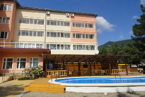 Гостиница «Плеяда» - пятиэтажный корпус (бывший корпус- пансионат санатория «Черноморец») расположен в тихом спокойном районе города, в непосредственной близости от центра города. Гостиница имеет собственную огороженную территорию с беседками для отдыха и летним открытым кафе. Дорога до пляжа занимает не более 5 - 10 минут /500 метров/ по зеленым улицам города. Легкодоступны основные объекты города: Зелёный театр, Утришский дельфинарий, парк аттракционов «Адмирал Врунгель».