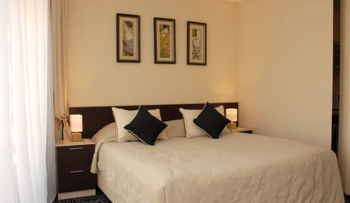 * "Апартаменты" (52 кв. м) – 2 односпальные кровати, рабочий стол, угловой диван, барная стойка, кухонный гарнитур, электрочайник, микроволновка, сейф, минибар, ЖК телевизор, проводной Интернет, телефон, ванная, фен.