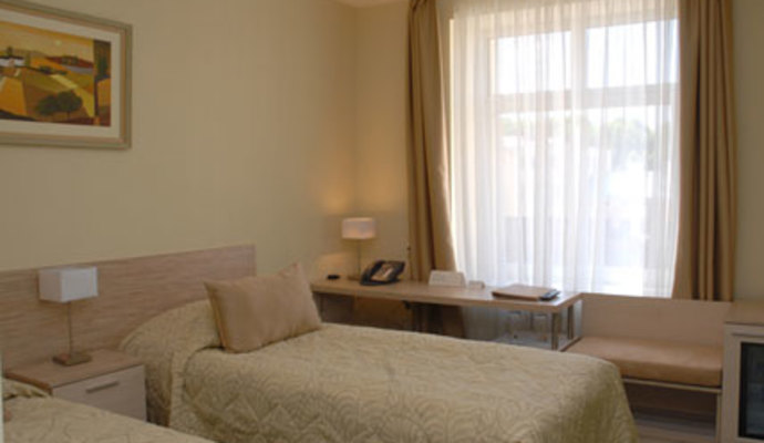 * "Полулюкс" (34 кв. м) - 2 односпальные кровати, рабочий стол, сейф, минибар, ЖК телевизор, проводной Интернет, телефон, ванная, фен;