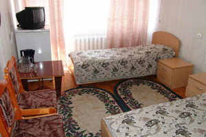 Корпус № 4. Современное шестиэтажное здание, рассчитанное на единовременный прием 250 человек: Одно- и двухместные однокомнатные номера 1 категории (душ, умывальник, унитаз, электрочайник, набор посуды, холодильник).