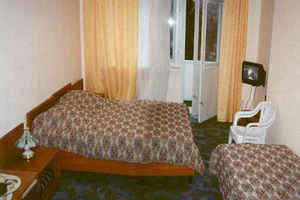 - 3-х местный (№ 102, 120) со всеми удобствами (ванна, туалет, умывальник). В номере: кровати, прикроватные тумбочки, стол, кресла, стулья, шкаф, полка для багажа, ковролин, ТВ, холодильник, кондиционер, телефон, балкон.