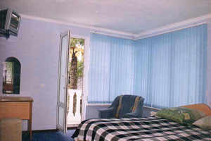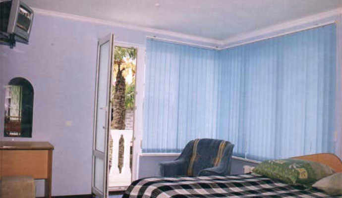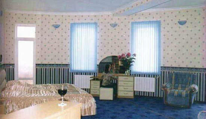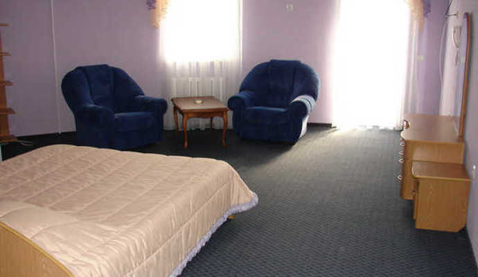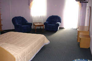 * Двухкомнатный двухместный номер Люкс (полный санузел, балкон, кондиционер, телефон, телевизор, холодильник; гостиная с диваном, телевизором, журнальным столиком; балкон с пластмассовой мебелью, кондиционером, спальня с двуспальной кроватью, тумбочками и зеркалом. Дополнительно место - диван.