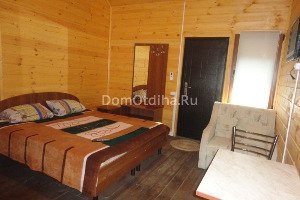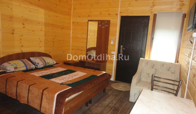 Однокомнатный коттедж до 3-х человек. В номере: двуспальная кровать (или 2 односпальные), кресло-кровать, шкаф, холодильник, сплит-система, санузел, чайник, тумбочки, стол, стулья.