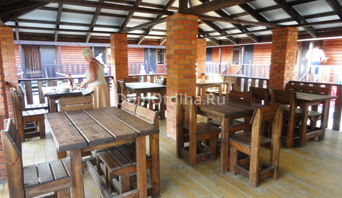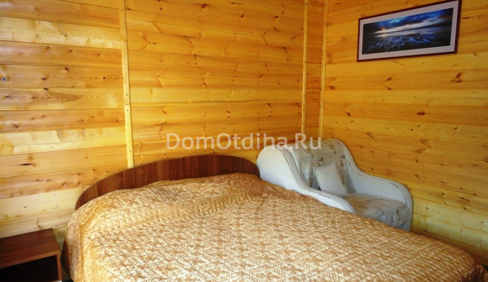 Двухкомнатный коттедж до 5 человек. В номере: двуспальная кровать (или 2 односпальные), раскладной диван, кресло-кровать, шкаф, холодильник, сплит-система, санузел, чайник, тумбочки, стол, стулья.