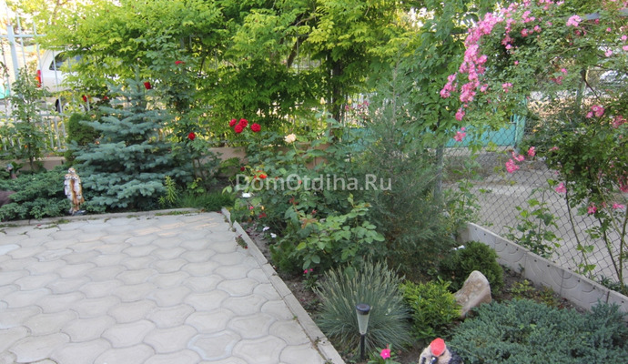 Большой зеленый двор, с местами для отдыха в виноградных беседках, много цветов. Во дворе есть мангал.