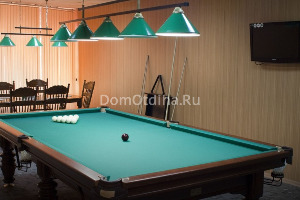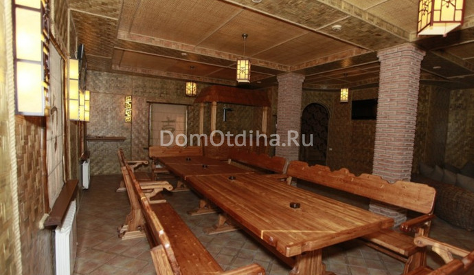 Для размещения своих отдыхающих VIP-усадьба использует комфортабельный просторный коттедж с 2 этажами, сруб-беседкой и летней кухней. Территория закрыта и хорошо охраняется. Для приехавших на автомобилях есть оборудованная парковка. Коттедж имеет кухню, столовую, гостиную, стол для бильярда. На кухне есть газовая плита, микроволновая печь, холодильник, необходимая посуда. Оформление усадьбы носит тематический характер, здесь имеются профессиональное музыкальное оборудование, караоке, DVD-плеер и плазменные современные панели. Бассейн также оригинально оформлен подсветкой и интересной мозаикой. В большом банкетном зале установлена комфортная мягкая мебель и организован бар с напитками.