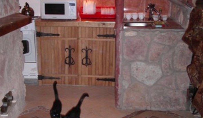 К услугам отдыхающих кухня (двухкамерный холодильник, газовая плита с духовкой, микроволновая печь, электрочайник, кастрюля, сковорода), русская баня, один санузел, в доме имеется телевизор и музыкальный центр с караоке, сервировочная посуда и приборы на 12 персон. А также мангал, шампура, связка дров для камина. По взаимной договоренности возможно приготовление пищи, сервировка столов, дополнительная уборка.