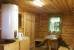 В коттедже имеются три комнаты, рассчитанные на размещение 5 гостей; две комнаты с видом на реку, одна комната с видом на лес. Кухня оборудована всей необходимой бытовой техникой.