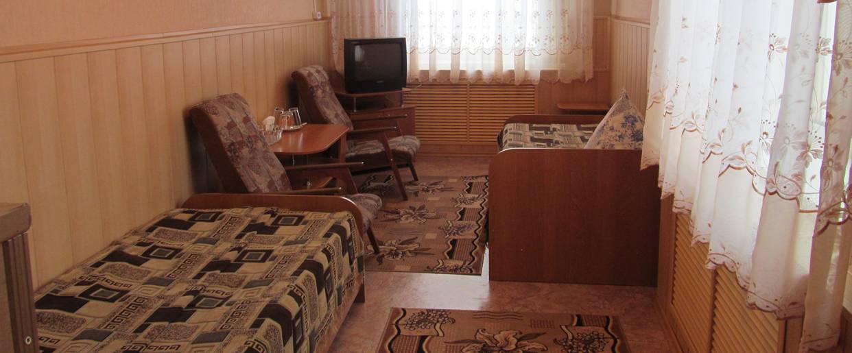 Предлагаем для размещения два одноэтажных корпуса, соединенных теплым переходом, один отдельно стоящий корпус, три летних домика. Категории номеров: одно, двух и трехместные номера класса «эконом», «стандарт», с удобствами в номере, на блок и на этаже, летние домики. Все номера оснащены телевизором и холодильником.