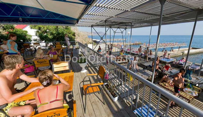 От пансионата до моря 300 м по пешеходной аллее, которая проходит мостиком над трассой Судак-Новый Свет, минует величественную Портовую башню средневековой Солдайи и выводит к галечному пляжу. Пляж оборудован двухъярусным солярием, удобными лежаками из экологически чистого дерева. Здесь есть кафе, медпункт, пункт проката пляжного инвентаря, душ с пресной водой. На лодочной станции имеются катамараны, катер, скутер, вёсельные лодки для морских прогулок. Пляж охраняется.
