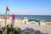 Широкий песчаный пляж в 300м, 5 минут ходьбы от отеля. Вход бесплатный, лежаки и зонтики за доп.плату. Пляж оборудован кафе, спортивной площадкой.