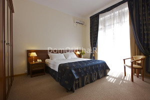 Одноместные, двухместные номера – все однокомнатные, с высоким потолком и балконом. Ванная комната оборудована современной сантехникой и располагает всем необходимым для комфортного отдыха. В номере телевизор, холодильник. С балкона открывается великолепный вид на море, парк и горы.