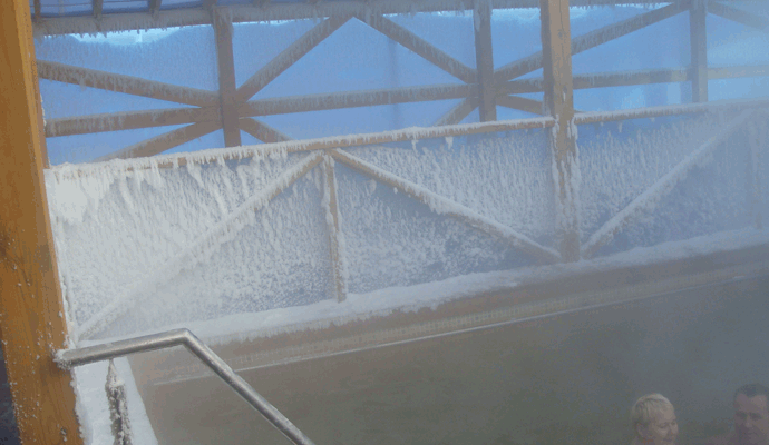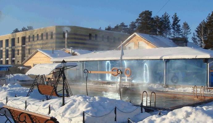 - Два бассейна (12×6 и 20×6) с горячей минеральной водой под открытым небом,