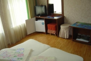 К услугам гостей мы предлагаем комплекс уютных комфортабельный номеров (люкс, эконом), оснащенных современной мебелью — «еврономер»: удобные кровати, кресла, пуфик, стол с холодильником, прикроватная тумба, журнальный стол, душ — туалет, с феном и полотенцесушителем, кондиционер, телевизор, в зависимости от погоды включаем теплые полы. Отдельно имеется оборудованная плитой, микроволновкой, электрочайником кухня, а так же гладильная доска и утюг, стиральная машина. Бесплатный доступ к WiFi во всех зонах. Все это в окружении цветущего сада, на закрытой охраняемой территории, есть место для стоянки машин.
