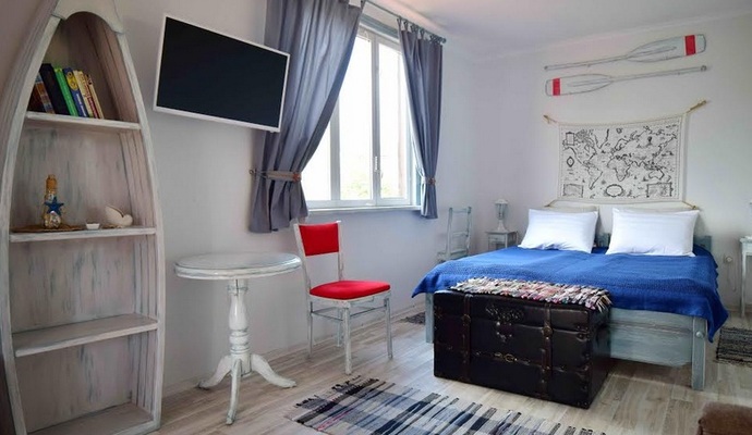 Мини-отель «Триера» расположен в южной части города Судак, на тихой уютной улице, в 10 мин. ходьбы к морю. Дорога к морю ровная, без спусков и подъемов (это, кстати, редкость для курортов Южнобережья), проходит по тенистым аллея парка, что сделает Вашу прогулку к морю совершенно неутомительной. Вас приятно удивит наш зелёный, уютный дворик с увитыми виноградной лозой беседками, тихо журчащим фонтанчиком, ночными огоньками, а в бархатно-осенний сезон – возможность совершенно бесплатно и вдоволь насладиться зрелым, сладким виноградом.
