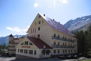 Отель «Альпина» сконтруирован и построен в стиле альпийского шале в нелавиноопасной зоне на поляне Азау в 150 метрах от подъемника, который доставит Вас на склоны Эльбруса,оснащенные 6 лыжными трассами любой сложности, общей протяженностью 11 км с перепадом высот до 2000 метров. Оригинальный интерьер этого семиэтажного отеля погружает в уютную атмосферу европеского колорита, а подходящие к самым окнам ветви великанов-сосен представляют отдыхающим покой и величие кавказской природы. Просторные номера и гостевые зоны, классическая сдерженность интерьеров, оборудование лобби-бара и номеров Люкс в сочетании с завораживающими горными видами из окон 7-этажного здания отеля располагают к прекрасному отдыху.