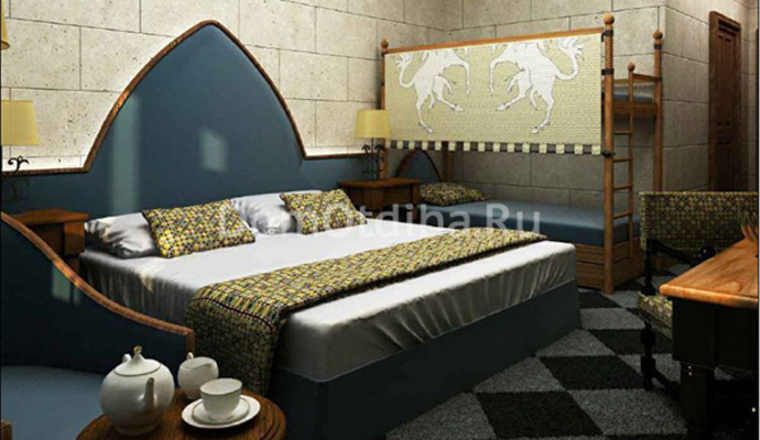 Отель "Богатырь" объединяет в себе всю роскошь средневековья и самые высокие стандарты современного комфорта. Окружённый волшебным миром Тематического парка, отель "Богатырь" ждёт в гости искателей приключений. Величественные башни возвышаются над тёплыми волнами Чёрного моря,а с востока из номеров открывется живописный вид на Кавказские горы. "Богатырь",будучи в шаговой доступности от Олимпйских объектов,станет лучшим выбором для любителей зимних видов спорта. К Вашим услугам:SPA, пляж,бассейн, ночной клуб, рестораны и наше гостеприимство!