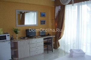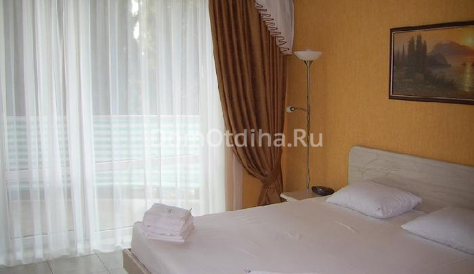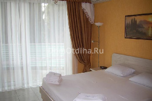 В самом здании царит современный европейский стиль. Оригинальная планировка просторных номеров, обилие панорамных окон и балконов в каждом номере с видом на прекрасную крымскую природу и море. Высокий уровень комфорта: большинство номеров - двухкомнатные, класса "люкс". В каждом номере: кондиционер, холодильник, ж/к телевизор (в двухкомнатных 2 ж/к телевизора), двд, спутниковое тв, ноутбук (интернет wi-fi), набор посуды, микроволновая печь, чайник, тостер, фен, утюг, мини-сейф, аптечка. В ванной комнате: мыло, шампунь, шапочка для душа, одноразовые тапочки.