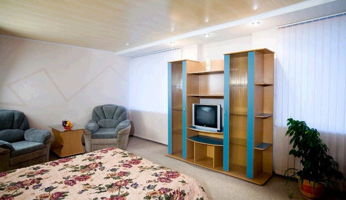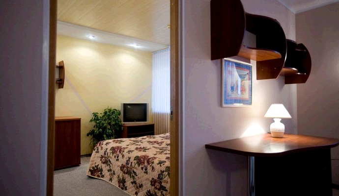 * Двухместные двухкомнатные номера категории "Люкс "(30 кв. м) – гостиная с мягкой мебелью, спальня с двуспальной кроватью), мини-холодильник, телевизор, телефон, санузел (душ или ванная, туалет);
