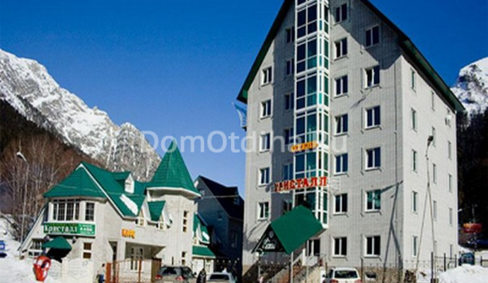 Гостиница «Кристалл» находится в центре Домбая на берегу реки Аманауз напротив нарзанного источника. В отеле «Кристалл» в Домбае: кафе, конференц-зал, баня, бильярд, сушилка с лыжехранилищем, парковка. Вместимость около 130 человек. Новый (основной) 7-ми этажный корпус отеля «Кристалл» (Домбай) работает с 2008 г.