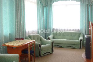 Пансионат расположен в 250 м от моря, в парковой зоне многолетних пихтовых насаждений, имеет собственный парк с детской площадкой. Уютный семейный пансионат предлагает однокомнатные, 2-х комнатные просторные номера площадью от 19 до 40 кв.м с потолками высотой до 3,5 м и витражными окнами. Санузел каждого номера оборудован ванной. ТV - 60 каналов, бесплатный wi-fi в корпусе пансионата.